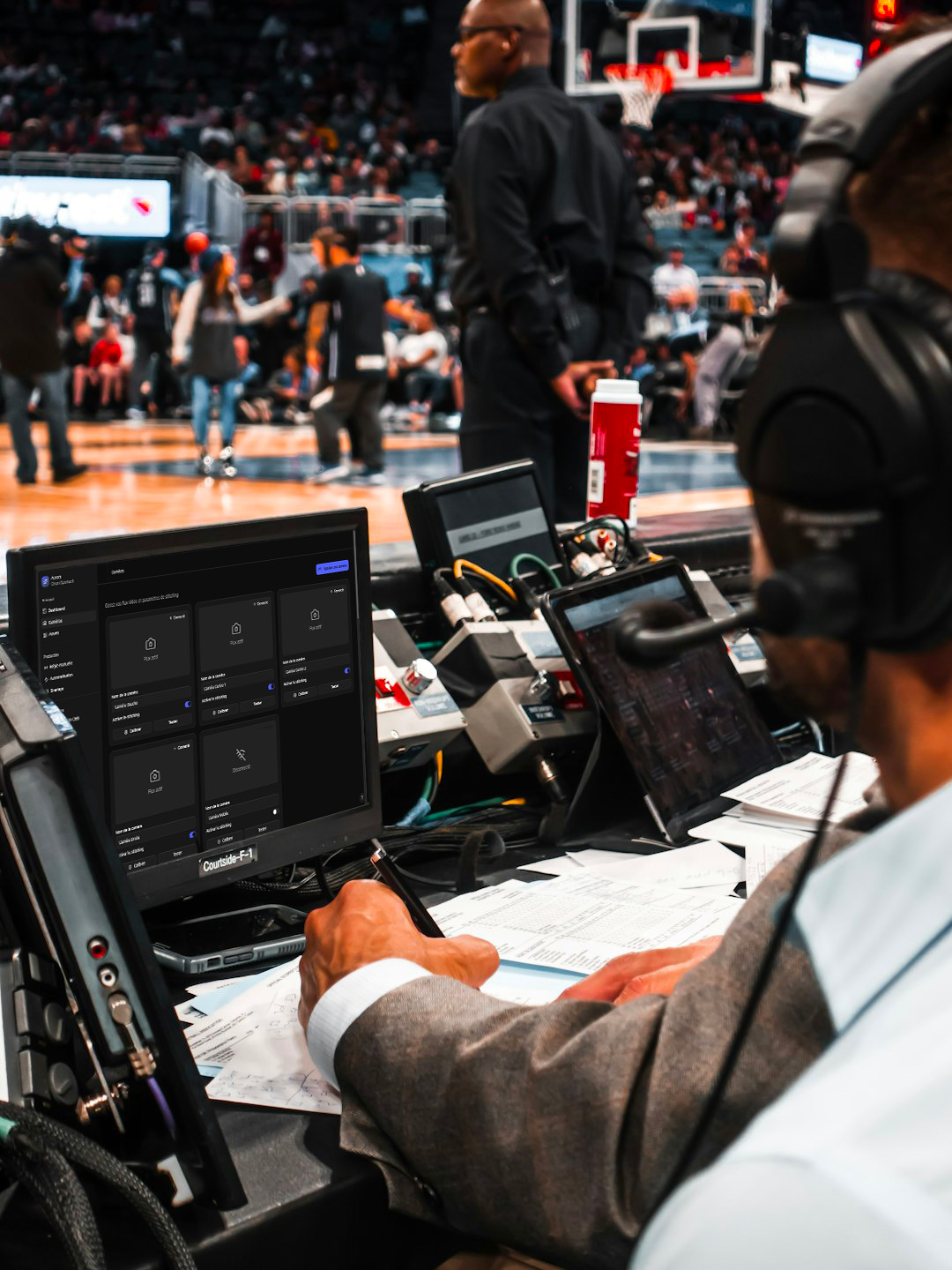 Webtv, écran géant, loges VIP : trois productions simultanées avec overlays, scores et replays automatiques.