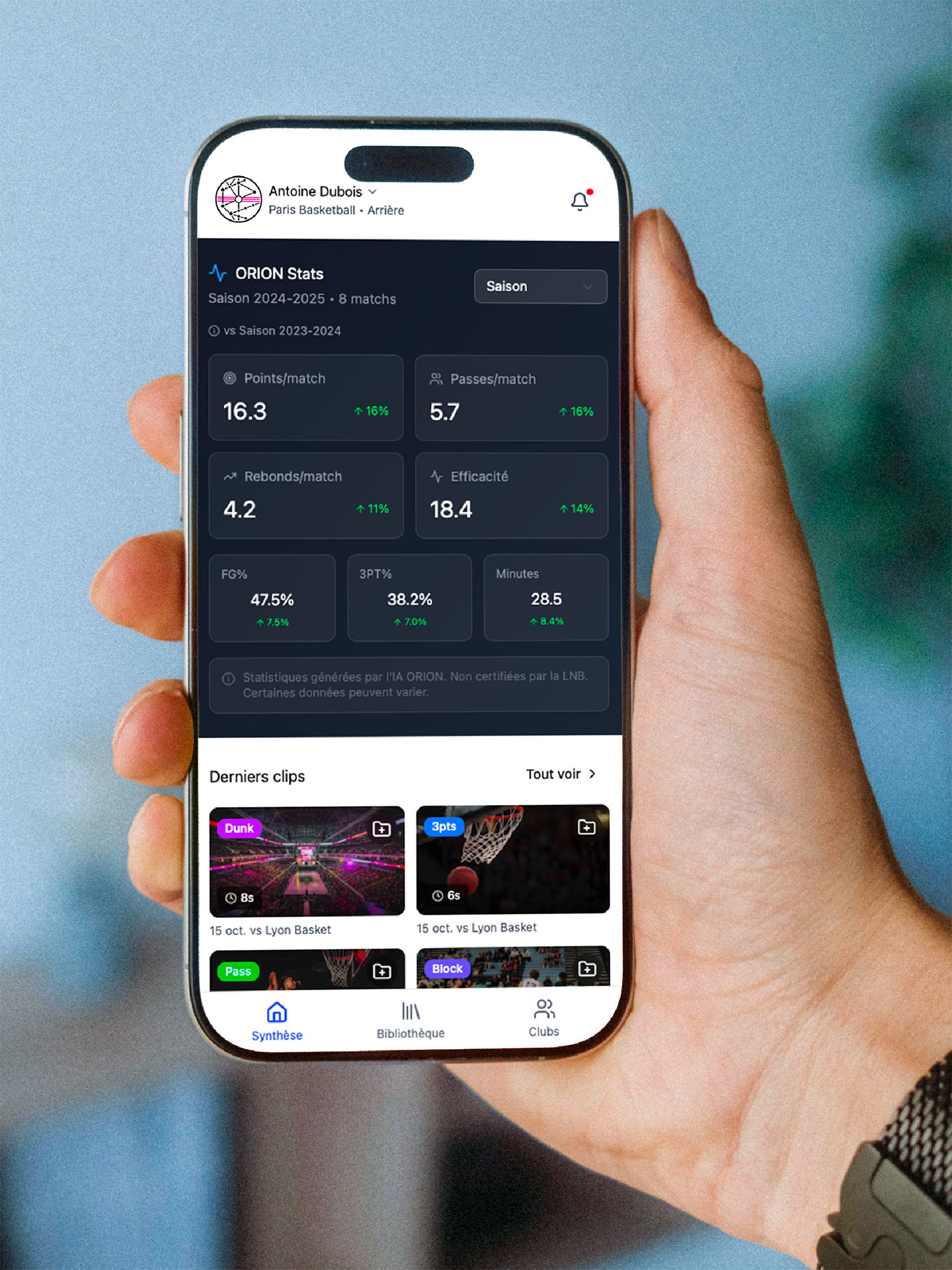 Chaque joueur accède à ses métriques de performance sur son mobile. Le staff pilote la progression individuelle.